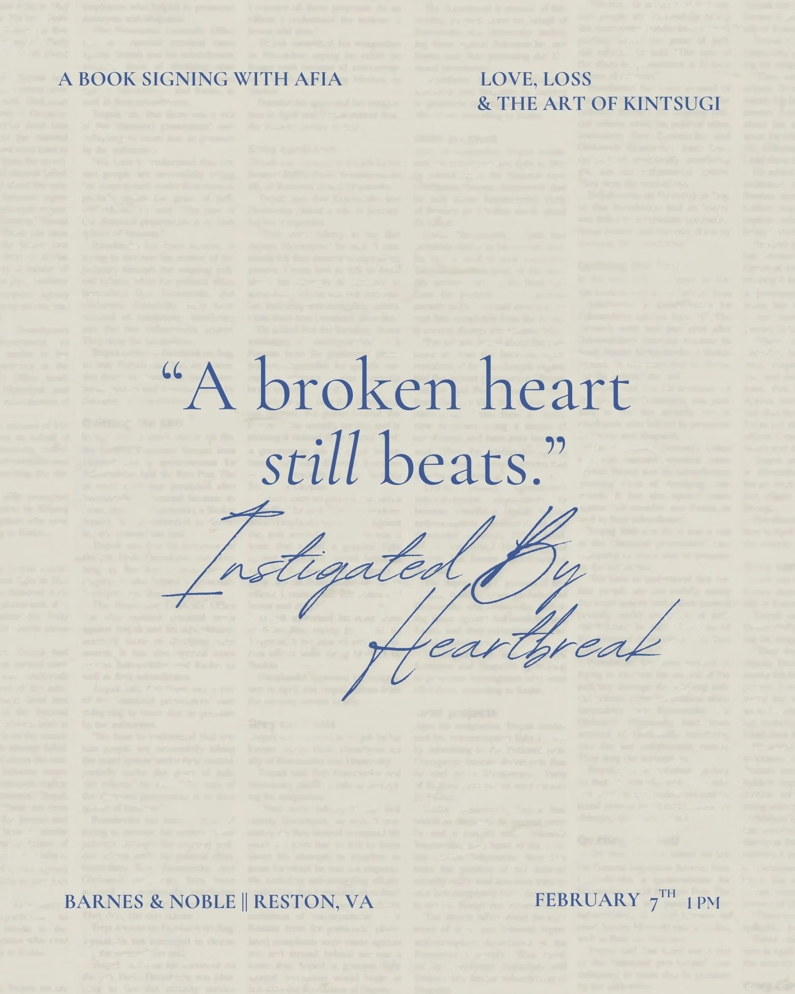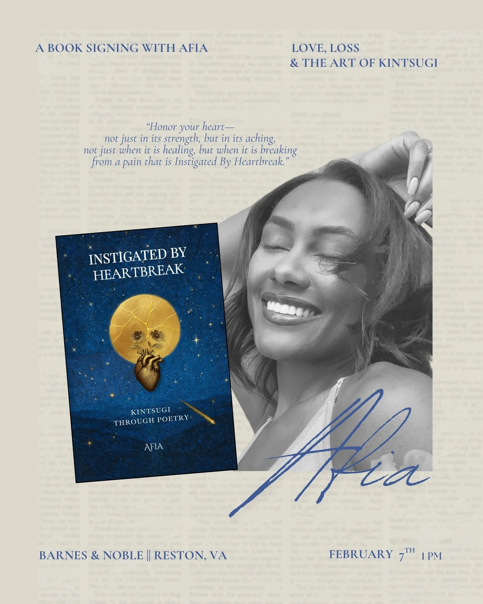 Instigated By Heartbreak: Kintsugi Through Poetry is a collection of poetry and prose for anyone who has ever had to piece themselves together after love falls apart. Drawing from kintsugi—the Japanese tradition of restoring pottery with gold—the collection engages with the idea that repair can be deliberate, thoughtful, and structurally beautiful.