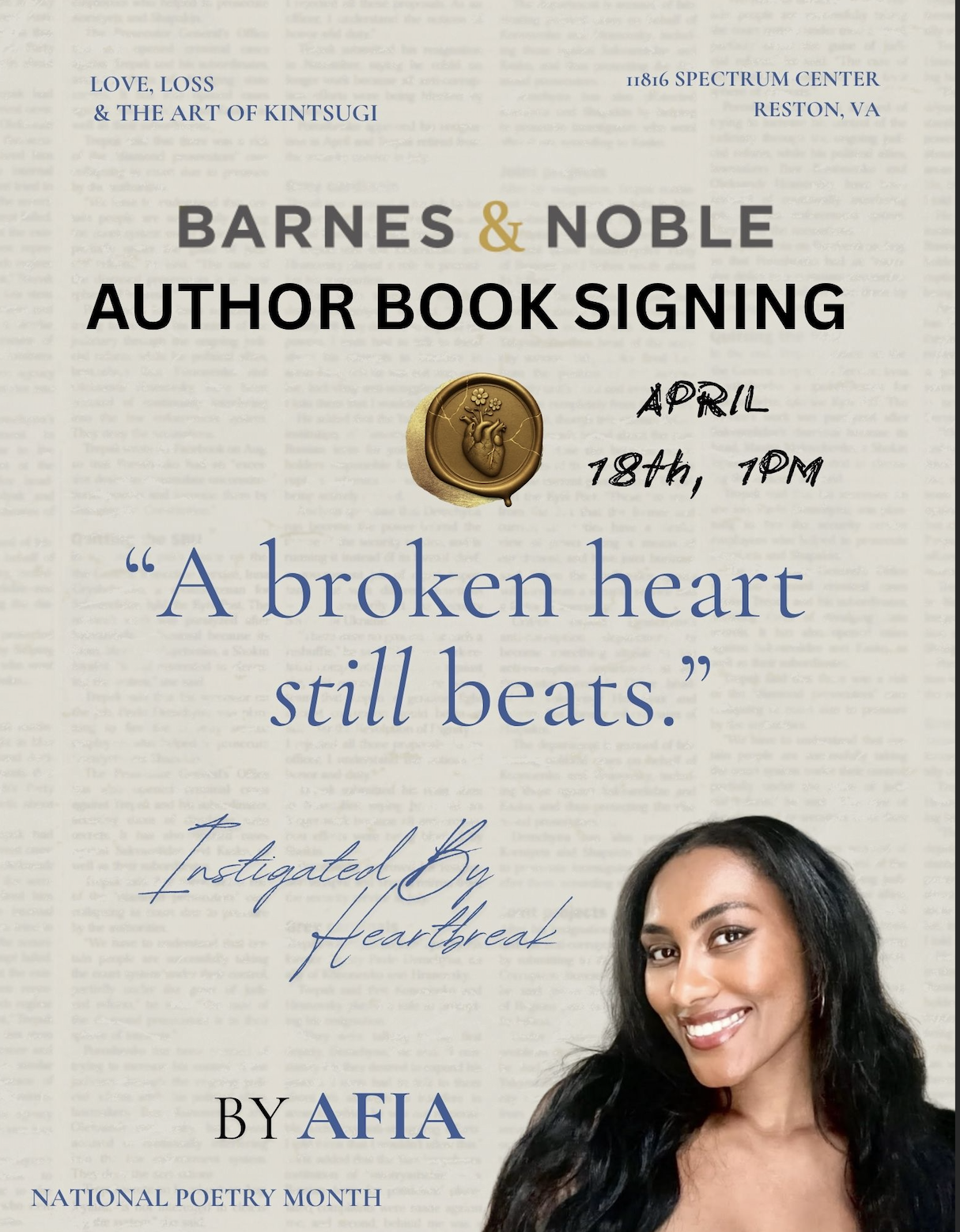 Back to All Events TBA Saturday, April 18, 2026 1:00 PM 5:00 PM Barnes & Noble Reston 11816 Spectrum Center Reston, VA, 20190 United States (map) Google Calendar ICS APRIL 18th, 2026! Read More RSVP RSVP